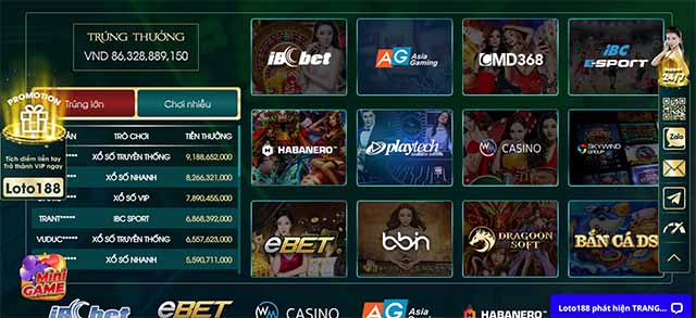 Loto188 cung cấp một loạt các thể loại game cá cược đa dạng, đáp ứng đủ nhu cầu của người chơi. Dưới đây là một số thể loại chính: